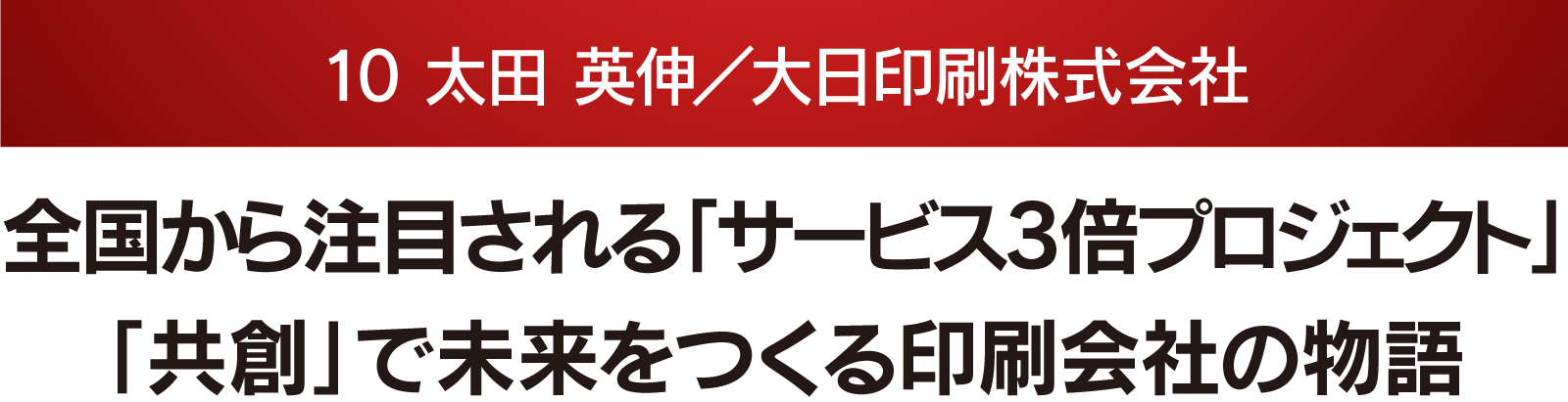 デジタル全盛の今、「斜陽産業」といわれる「印刷業」。その中でも様々な工夫と挑戦をすることで未来を切り拓いてきた10名の経営者の生き方を描いた一冊です。
