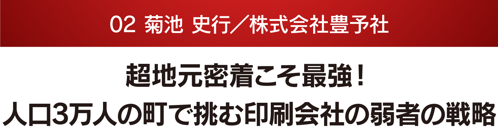 「印刷とは人々にワクワクする情報を提供すること」をモットーに、伝票印刷業→チラシ印刷業→広告販促コンテンツ制作業と会社を変革させ、WEB、動画、印刷、LINEを中心に事業を展開中。グラフィックデザインや周りが考えつかなそうなアイデアで定評がある。